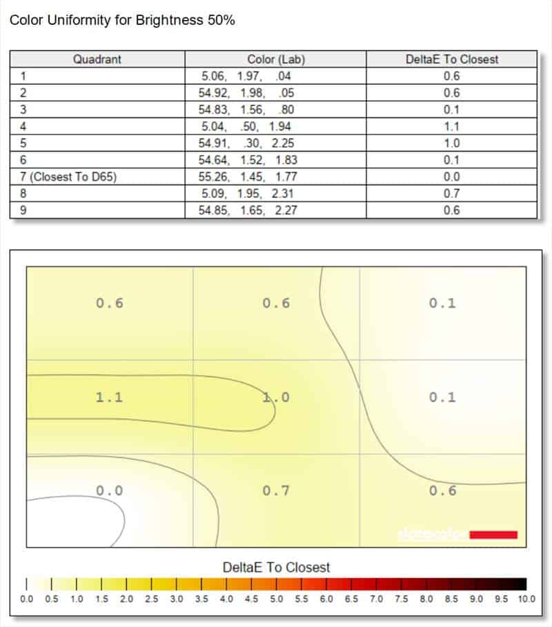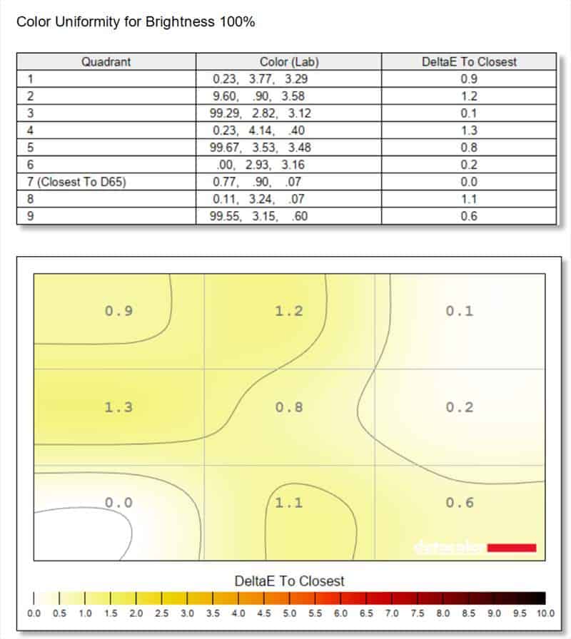 După cum puteți vedea, valorile uniformitatilor sunt peste așteptări. Îmi este clar ca EIZO are cele mai uniforme paneluri si testează cu adevărat riguros exemplarele înainte sa iasă de pe poarta fabricii.