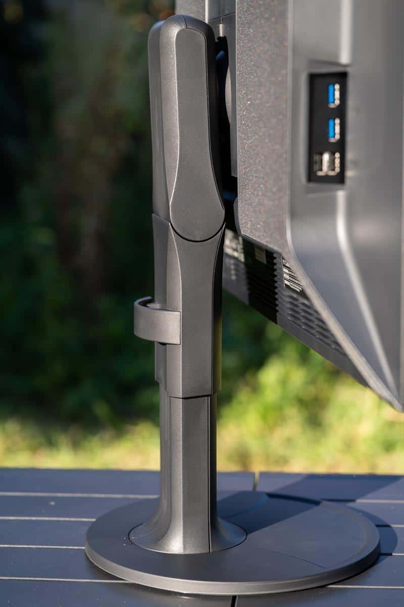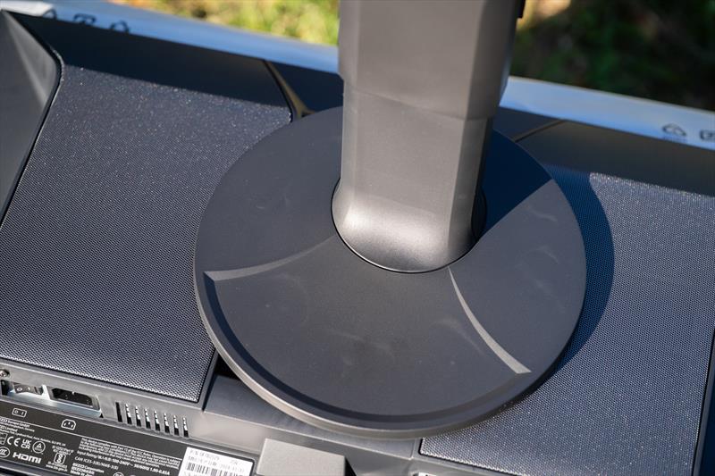 Baza monitorului este circulara si are ~3 kilograme. Rotirea se face din picior, baza ramanand solidă.