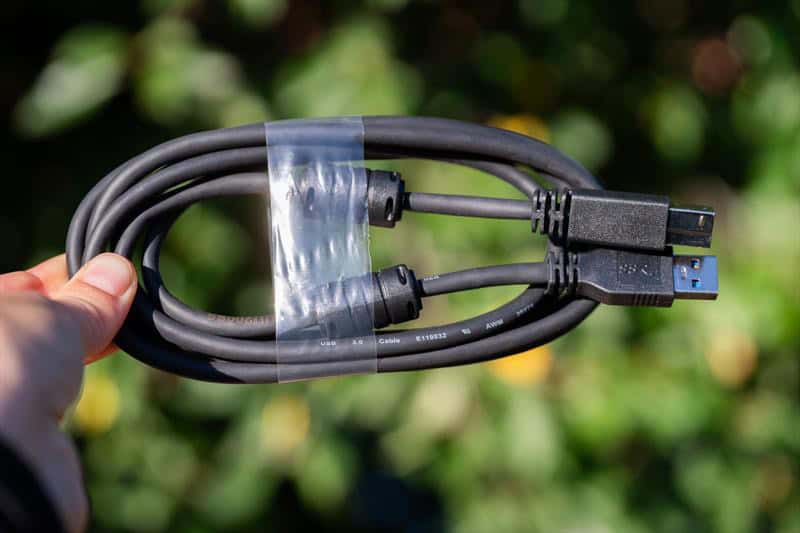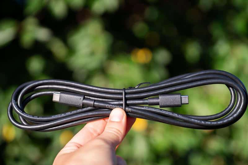 In cutie, pe lângă panou, găsim cablurile USB-C la C – HDMI – Alimentarea si un USB-A la un USB Type B pentru Hub.