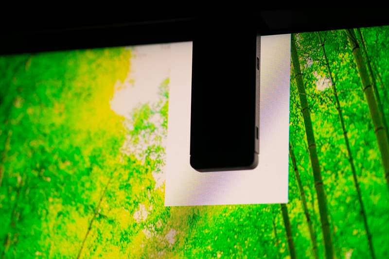Cam așa arată si calibrarea automată făcută de senzorul integrat in rama de sus. Aceasta funcționalitate a făcut mereu seria Color Edge sa aibă un loc al sau. Brațul se coboară prin inițierea procesului de calibrare.