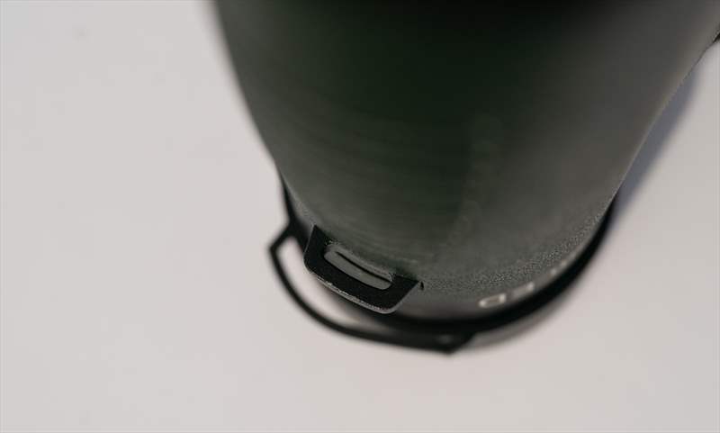 Pe spatele binoclului putem observa design-ul ergonomic al cilindrilor si articulația care le unește.