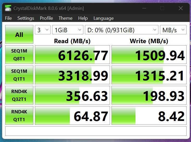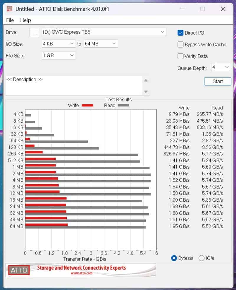 OWC Express 1M2 cu interfața Thunderbolt 5 promite performante de pana la 6000 MB/s la citiri si scrieri. Aceste cifre sunt maxime si pur orientative. Așadar am pus la test acest Rack extern sa vedem ce performante obținem. Iată cifrele obținute pe platforma Windows cu interfata Thunderbolt 5: