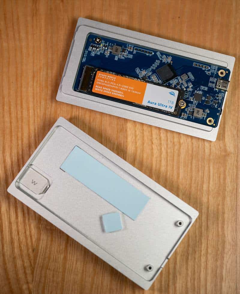 OWC Express 1M2 cu interfața Thunderbolt 5 este un Rack extern extrem de solid făcut din aluminiu la CNC. Nu se încălzește si menține performanța constanta atâta timp cât SSD-ul intern are buffer. Compatibilitatea interfeței de la interior permite instalarea oricărui SSD PCIe 4.0 in format M.2 2280. Răcirea pasivă a cipurilor se face prin carcasa, iar la aceasta caldura ajunge prin pad-ul termic lipit de o parte a carcasei. Instalarea se face ușor, iar performanțele sunt peste așteptări daca ai echipamentul potrivit ( cablul thunderbolt 5 inclus si echipament gazda cu aceasta interfața ). OWC Express 1M2 rămâne un rack premium cu costuri pe măsura performanțelor sale.