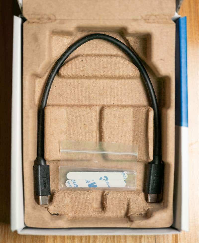 In cutie, pe lângă Rack, se găsește cablul Thunderbolt 5, pad-uri 3M de rezerva pentru instalarea SSD-ului.