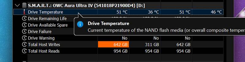 Sa ai un rack cu interfața Thunderbolt 5 nu este puțin lucru, chiar si in 2026. Zic asta pentru ca putine placi de baza si echipamente Apple suporta cu adevărat vitezele susținute de acest standard. Cei 6000 MB/s pot fi atinși doar cu echipamente cu aceasta conexiune si SSD-uri M.2 interne instalate cu standard PCIe 4.0 care ajung pe la aceste viteze. OWC Express 1M2 a venit cu propriul SSD instalat din seria Aura Ultra IV de 1 TB, acesta fiind disponibil si in variante de 2, 4 si 8 TB. Așa am putut testa rack-ul cu un SSD agreat de acest rack. Totuși daca alegi sa iei unul ”gol” poți pune liniștit un Samsung 990 Pro / 9100 Pro ( vezi SSD ). Personal, folosesc zilnic SSD-uri externe USB 4.0 / USB 3.2 cu viteze de ~3000 MB/s care merg excelent la transferuri, editare video si foto direct de pe acestea. Un SSD Thunderbolt 5 extern este dublu ca performanta, in teorie, dar scenariile in care ai nevoie sunt mai limitate. Totuși ca posesor de Apple ai mai mult nevoie de așa ceva decât daca ești pe Windows.