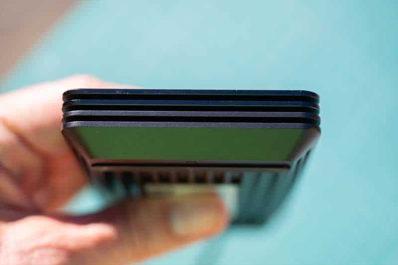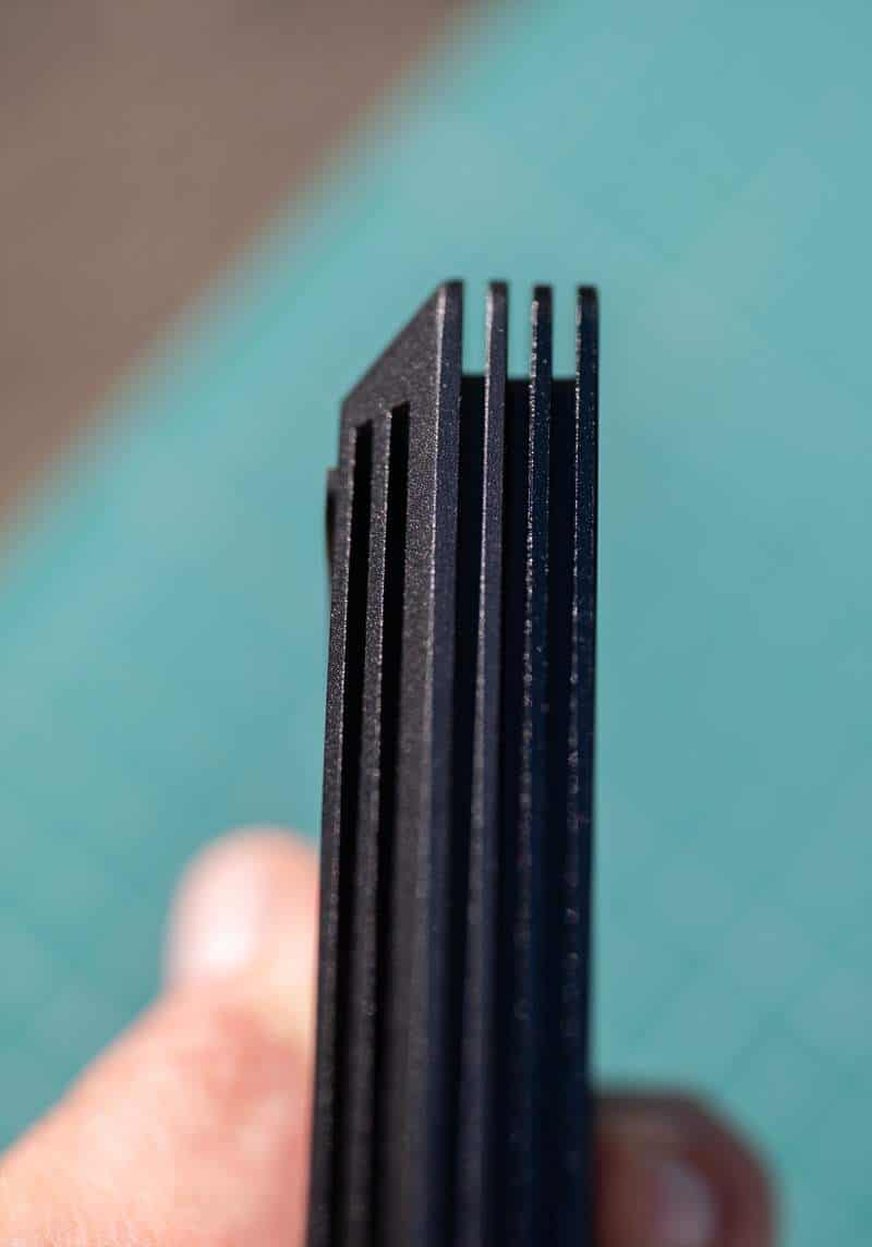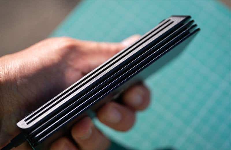 Cam asa arata marginile si detaliile carcasei din aluminiu. Are un design de racire pasiva.