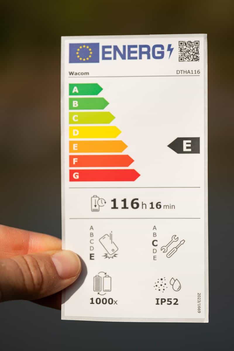Pe cutie vedem si cele 1000 cicluri de încărcare-descarcare al tabletei si o certificare IP52. Îmi place sa vad scorurile de reparație pe produse.