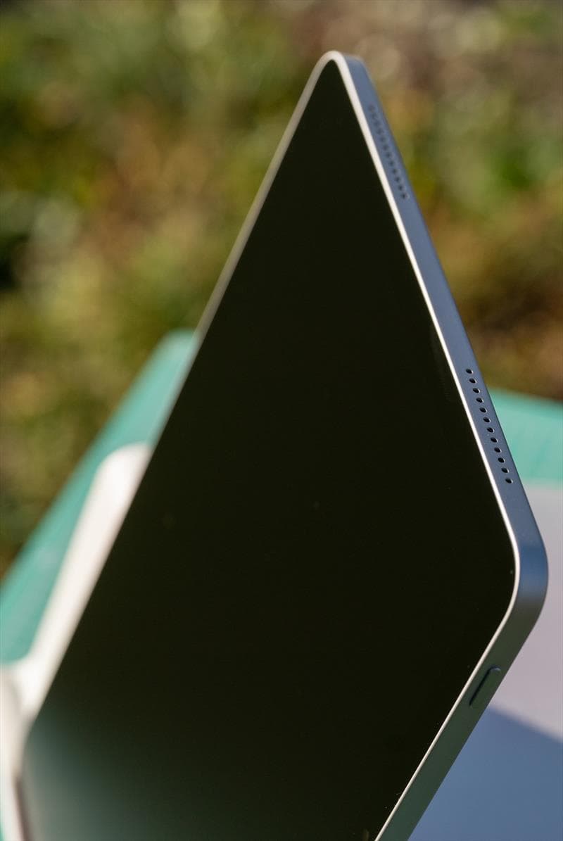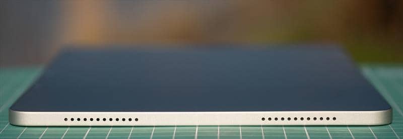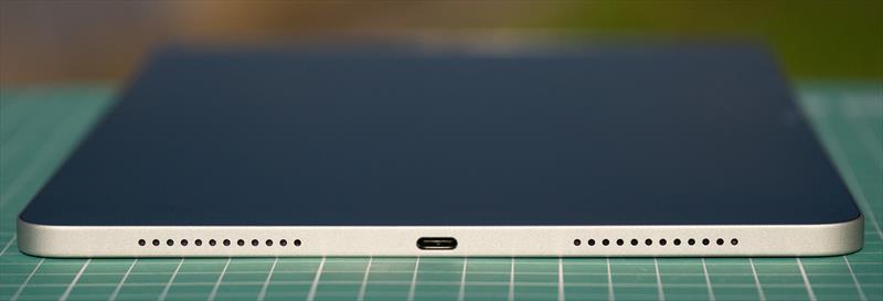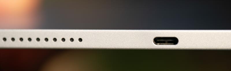 In partea de sus a tabletei avem 2 difuzoare, aiar jos alte 2 difuzoare + portul de reincarcare USB-C.