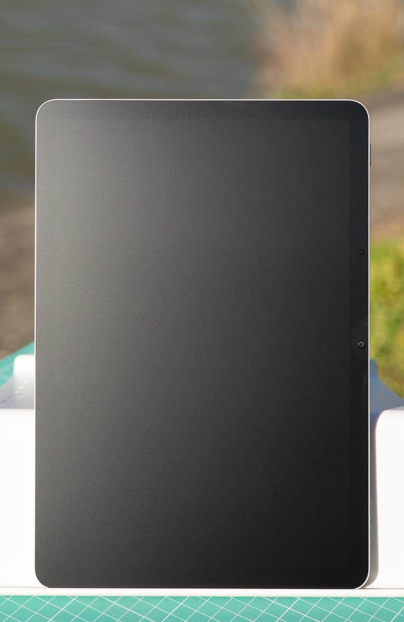 Cam asa se prezinta frontal tableta Wacom. Ecranul are un coating cat se poate de mat.