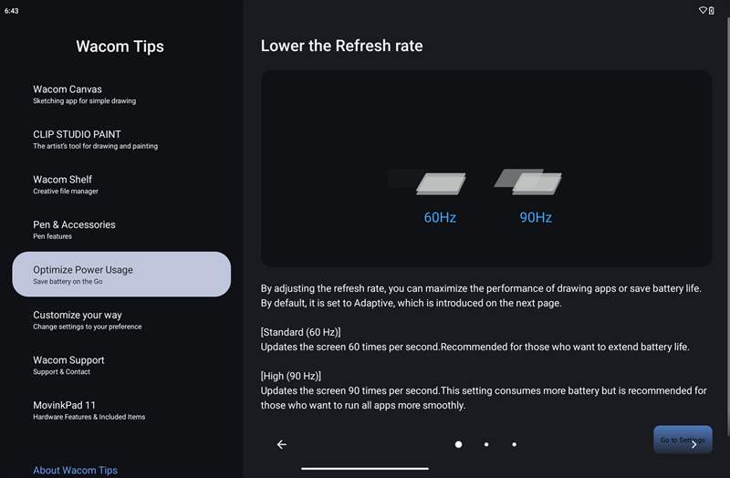 Pe partea de hardware avem ecranul IPS cu luminozitate de 400 niti si sticla securizata AF+AG pentru rezistența si feedback auditiv care simulează hârtia. Configuratia hardware vine cu procesor Mediatek Helio G99 si 8 GB de RAM LPDDR4, procesorul are in componenta 2 nuclee de performanța si 6 de eficiența. Memoria de 128 GB este suficientă pentru aplicațiile de desen si stocare locala de diverse, dar păcat ca nu vine cu stocare microSD. Mi se pare o oportunitate ratata din partea lor. Totuși Wacom MovinkPad 11 rămâne o tableta capabila pentru scopul sau, iar Wacom ProPen 3 este un stylus de top pentru a realiza cele mai complexe grafici si desene. Imaginație si talent sa existe din direcția posesorului.