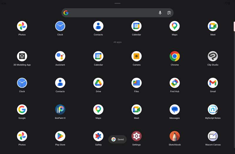 Interfața lui MovinkPad 11 este defapt un Android cu skin simplist aplicat peste. Se mișcă bine, eu nu am încărcat-o cu absolut nici un joc sau alte aplicații. Am instalat bundle-urile de aplicații cu care vine Wacom si alte câteva programe de desenat. Configurația hardware este cât se poate puternică sa susțină si câteva jocuri, adrese de Gmail si alte task-uri de productivitate. Iată cum se prezintă o parte din interfața: